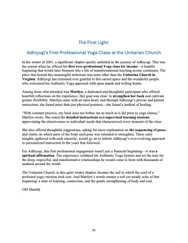 In the winter of 2001, a significant chapter quietly unfolded in the journey of Adhiyogi. This was the season when he offered his first ever professional Yoga class for income—a humble beginning that would later blossom into a life of transformational teaching across continents. The place that hosted this meaningful milestone was none other than the Unitarian Church in Virginia. Adhiyogi has remained ever grateful to this sacred space and the wonderful people who welcomed his Authentic Yoga approach with open minds and willing hearts.