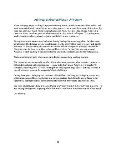 The story of Adhiyogi’s time at George Mason University was not just about Yoga in a gym — it was about planting seeds in young minds that would later bloom in various corners of the world.