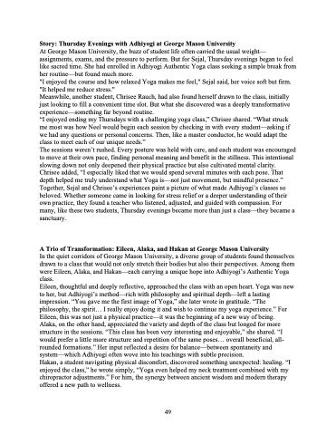 In the quiet corridors of George Mason University, a diverse group of students found themselves drawn to a class that would not only stretch their bodies but also their perspectives. Among them were Eileen, Alaka, and Hakan—each carrying a unique hope into Adhiyogi’s Authentic Yoga class.