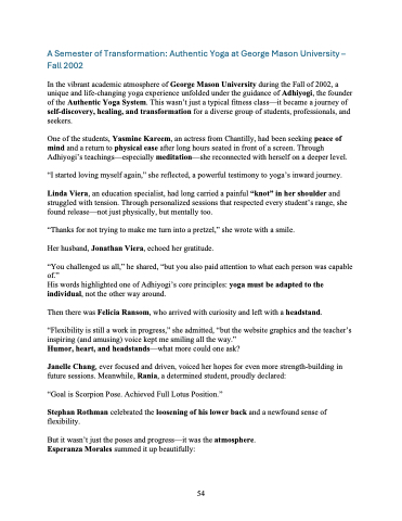 In the vibrant academic atmosphere of George Mason University during the Fall of 2002, a unique and life-changing yoga experience unfolded under the guidance of Adhiyogi, the founder of the Authentic Yoga System. This wasn’t just a typical fitness class—it became a journey of self-discovery, healing, and transformation for a diverse group of students, professionals, and seekers.
