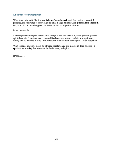 “Adhiyogi is knowledgeable about a wide range of subjects and has a gentle, peaceful, patient spirit about him. I continue to recommend his classes and instructional aides to my friends, family, and co-workers. Really, I would recommend his classes to everyone. I wish you peace.”