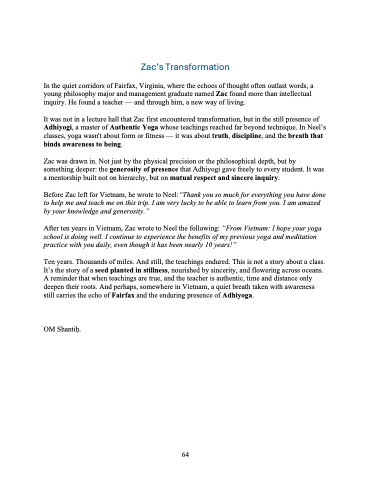 After ten years in Vietnam, Zac wrote to Neel the following: “From Vietnam: I hope your yoga school is doing well. I continue to experience the benefits of my previous yoga and meditation practice with you daily, even though it has been nearly 10 years!”