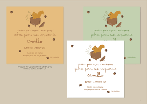 LO SCOIATTOLO E LA GHIANDA: RINGRAZIAMENTO FORMATO QUADRATO: 16X16 CM