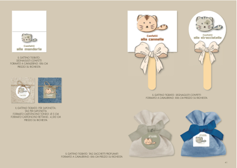 IL GATTINO TIGRATO: TAG SACCHETTI PROFUMATI FORMATO A CAVALIERINO: 8X6 CM PREZZO SU RICHIESTA