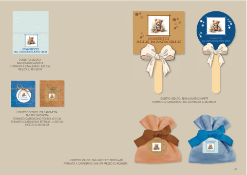 L'ORSETTO SEDUTO: TAG SACCHETTI PROFUMATI FORMATO A CAVALIERINO: 8X6 CM PREZZO SU RICHIESTA