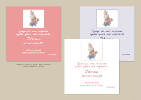 LA CONIGLIETTA CON IL CIUCCIO: RINGRAZIAMENTO FORMATO QUADRATO: 16X16 CM