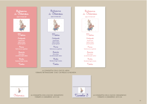 LA CONIGLIETTA CON IL CIUCCIO: MENU FORMATO RETTANGOLARE: 9,9X21 CM PREZZO SU RICHIESTA