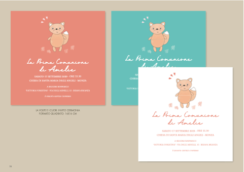 LA VOLPE E I CUORI: INVITO CERIMONIA FORMATO QUADRATO: 16X16 CM