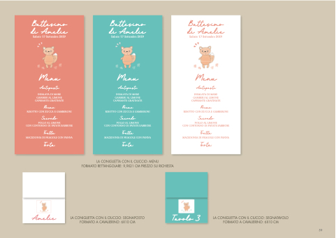 LA CONIGLIETTA CON IL CIUCCIO: MENU FORMATO RETTANGOLARE: 9,9X21 CM PREZZO SU RICHIESTA