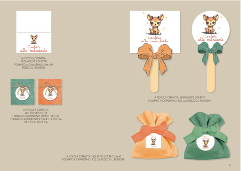 LA PICCOLA CERBIATTA: TAG SACCHETTI PROFUMATI FORMATO A CAVALIERINO: 8X6 CM PREZZO SU RICHIESTA