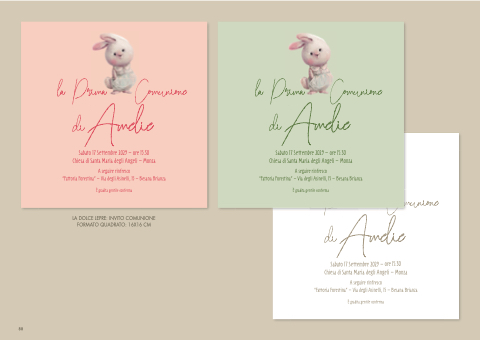 LA DOLCE LEPRE: INVITO COMUNIONE FORMATO QUADRATO: 16X16 CM