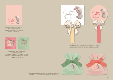 L'ABBRACCIO DELLE CONIGLIETTE: SEGNAGUSTI CONFETTI FORMATO RETTANGOLARE: 8X6 CM PREZZO SU RICHIESTA