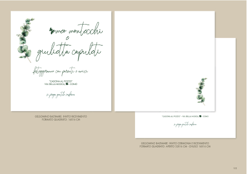GELSOMINO BALTIMARE: INVITO CERIMONIA E RICEVIMENTO FORMATO QUADRATO: APERTO 32X16 CM - CHIUSO 16X16 CM