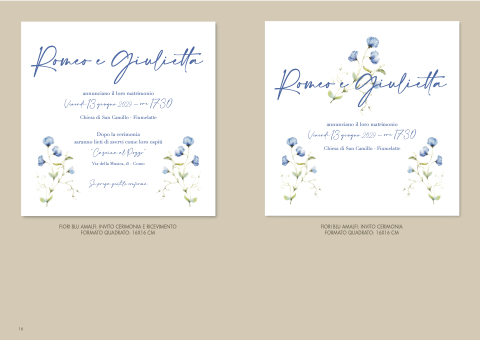 FIORI BLU AMALFI: INVITO CERIMONIA E RICEVIMENTO FIORI BLU AMALFI: INVITO CERIMONIA FORMATO QUADRATO: 16X16 CM FORMATO QUADRATO: 16X16 CM