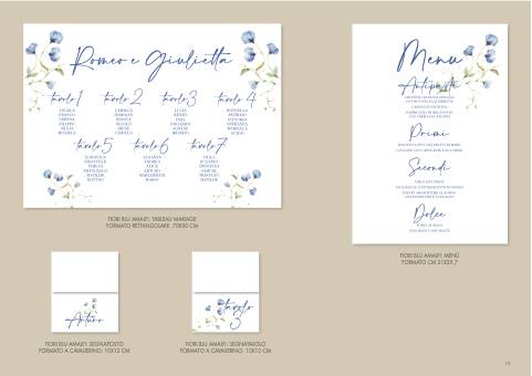 FIORI BLU AMALFI: SEGNAPOSTO FIORI BLU AMALFI: SEGNATAVOLO FORMATO A CAVALIERINO: 10X12 CM FORMATO A CAVALIERINO: 10X12 CM