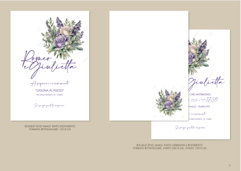 BOUQUET ROSE AMALFI: INVITO CERIMONIA E RICEVIMENTO FORMATO RETTANGOLARE: APERTO 26X18 CM - CHIUSO 13X18 CM