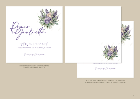 BOUQUET ROSE AMALFI: INVITO CERIMONIA E RICEVIMENTO FORMATO QUADRATO: APERTO 32X16 CM - CHIUSO 16X16 CM