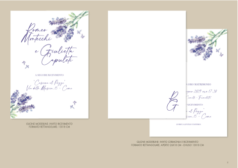 GLICINE MODERLINE: INVITO CERIMONIA E RICEVIMENTO FORMATO RETTANGOLARE: APERTO 26X18 CM - CHIUSO 13X18 CM