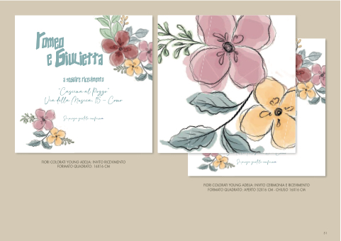 FIORI COLORATI YOUNG ADELIA: INVITO CERIMONIA E RICEVIMENTO FORMATO QUADRATO: APERTO 32X16 CM - CHIUSO 16X16 CM