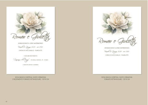 ROSA BIANCA SCRIPTINA: INVITO CERIMONIA ROSA BIANCA SCRIPTINA: INVITO CERIMONIA E RICEVIMENTO FORMATO RETTANGOLARE: 13X18 CM FORMATO RETTANGOLARE: 13X18 CM