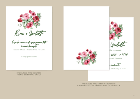 ROSE LIGATURES: INVITO CERIMONIA E RICEVIMENTO FORMATO RETTANGOLARE: APERTO 26X18 CM - CHIUSO 13X18 CM