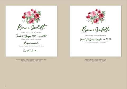 ROSE LIGATURES: INVITO CERIMONIA E RICEVIMENTO ROSE LIGATURES: INVITO CERIMONIA FORMATO QUADRATO: 16X16 CM FORMATO QUADRATO: 16X16 CM