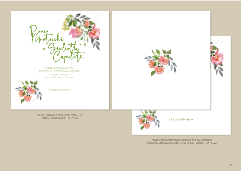 PEONIE SURREALLY: INVITO CERIMONIA E RICEVIMENTO FORMATO QUADRATO: APERTO 32X16 CM - CHIUSO 16X16 CM