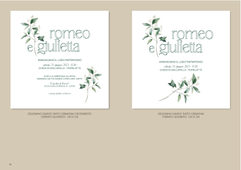 GELSOMINO GALIENT: INVITO CERIMONIA E RICEVIMENTO GELSOMINO GALIENT: INVITO CERIMONIA FORMATO QUADRATO: 16X16 CM FORMATO QUADRATO: 16X16 CM
