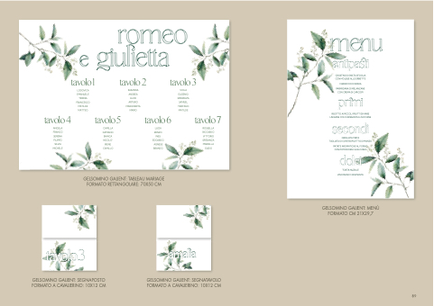 GELSOMINO GALIENT: SEGNAPOSTO GELSOMINO GALIENT: SEGNATAVOLO FORMATO A CAVALIERINO: 10X12 CM FORMATO A CAVALIERINO: 10X12 CM
