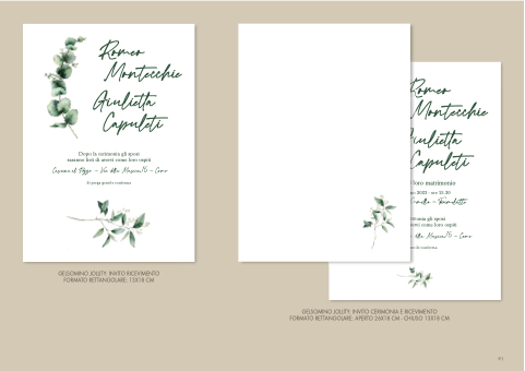 GELSOMINO JOLLITY: INVITO CERIMONIA E RICEVIMENTO FORMATO RETTANGOLARE: APERTO 26X18 CM - CHIUSO 13X18 CM