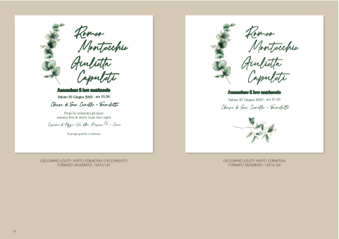 GELSOMINO JOLLITY: INVITO CERIMONIA E RICEVIMENTO GELSOMINO JOLLITY: INVITO CERIMONIA FORMATO QUADRATO: 16X16 CM FORMATO QUADRATO: 16X16 CM