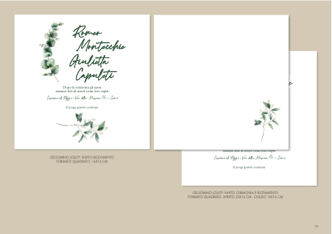 GELSOMINO JOLLITY: INVITO CERIMONIA E RICEVIMENTO FORMATO QUADRATO: APERTO 32X16 CM - CHIUSO 16X16 CM