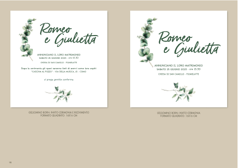 GELSOMINO BORN: INVITO CERIMONIA E RICEVIMENTO FORMATO QUADRATO: 16X16 CM