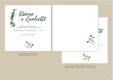 GELSOMINO BORN: INVITO CERIMONIA E RICEVIMENTO FORMATO QUADRATO: APERTO 32X16 CM - CHIUSO 16X16 CM