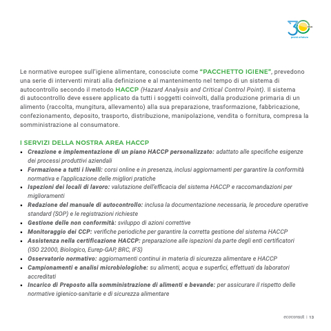 I SERVIZI DELLA NOSTRA AREA HACCP