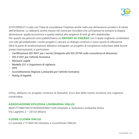 Per questo da parecchi anni pubblichiamo un REPORT DI CSR/ESG con il quale vogliamo condividere con tutti gli stakeholder i nostri progetti e cercare un dialogo continuo e nuovi spunti di riflessione.