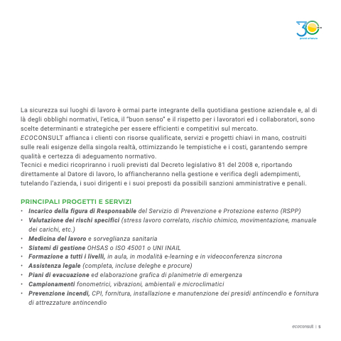 ECOCONSULT affianca i clienti con risorse qualificate, servizi e progetti chiavi in mano, costruiti sulle reali esigenze della singola realtà, ottimizzando le tempistiche e i costi, garantendo sempre qualità e certezza di adeguamento normativo.