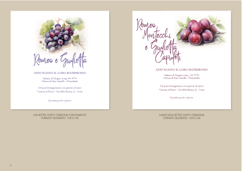 UVA BETTER: INVITO CERIMONIA E RICEVIMENTO SUSINE ROSA BETTER: INVITO CERIMONIA FORMATO QUADRATO: 16X16 CM FORMATO QUADRATO: 16X16 CM