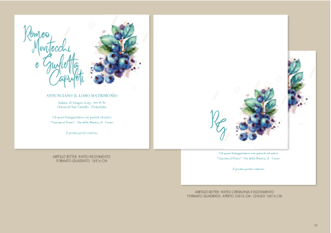 MIRTILLO BETTER: INVITO CERIMONIA E RICEVIMENTO FORMATO QUADRATO: APERTO 32X16 CM - CHIUSO 16X16 CM