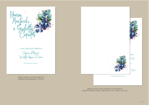 MIRTILLO BETTER: INVITO CERIMONIA E RICEVIMENTO FORMATO RETTANGOLARE: APERTO 26X18 CM - CHIUSO 13X18 CM