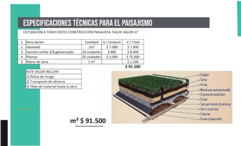 COTIZACIÓN A TODO COSTO CONSTRUCCIÓN PAISAJISTA TALUD VALOR m²