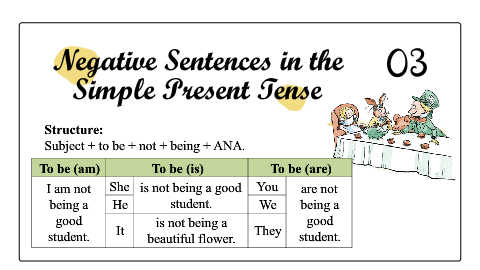 Subject + to be + not + being + ANA.
