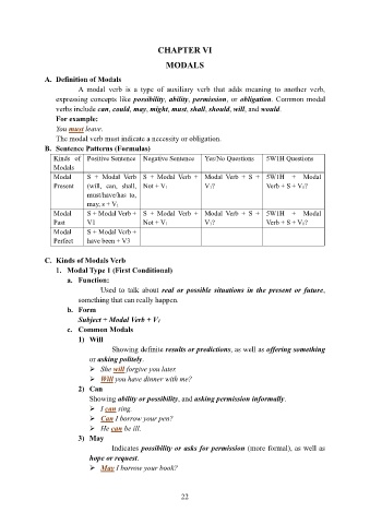 expressing concepts like possibility, ability, permission, or obligation. Common modal