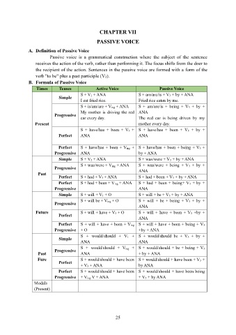 the recipient of the action. Sentences in the passive voice are formed with a form of the