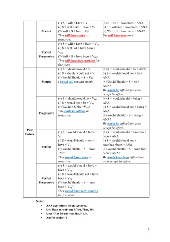 (+) S + should/would + V1 (+) S + would/should + be + ANA