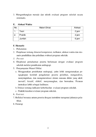 nario pendidikan dan pelatihan evaluasi program sekolah.
