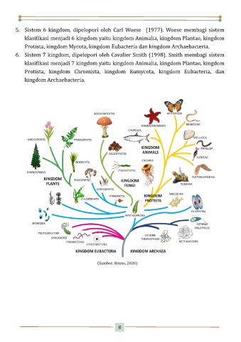 klasifikasi menjadi 6 kingdom yaitu kingdom Animalia, kingdom Plantae, kingdom