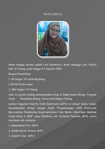 Nama lengkap penulis adalah Lusi Gushendra, akrab dipanggil Lusi. Penulis