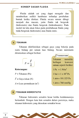 Tekanan didefinisikan sebagai gaya yang bekerja pada