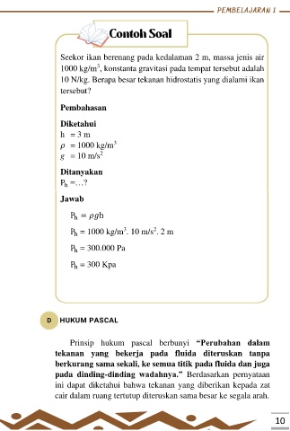 10 N/kg. Berapa besar tekanan hidrostatis yang dialami ikan
